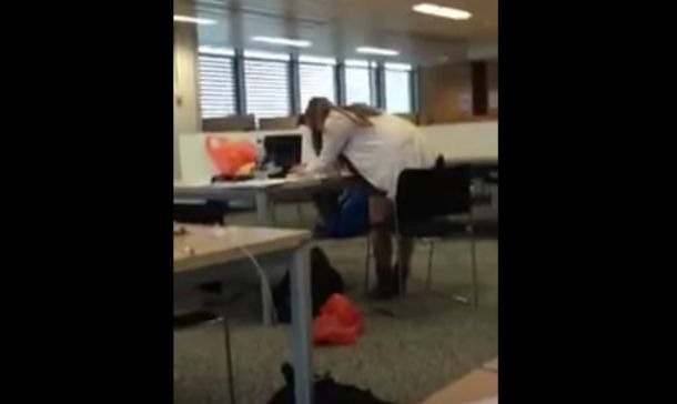 A pesar que la trabajadora se sorprendió e intentó apagar su ordenador (después de ponerse roja como una manzana por la vergüenza), no lo logró con mucho éxito, aunque luego lo tomó con humor como muestran las imágenes den YouTube.