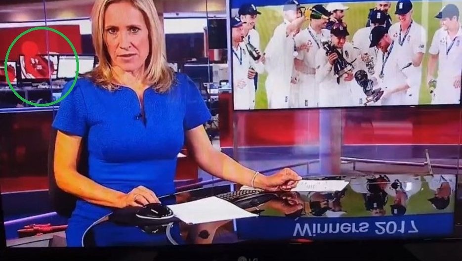 Eran las 10 de la noche y la conductora de BBC Sophie Raworth hablaba de cricket. Todo bien hasta que en la parte de la pantallas se puede ver a una joven quitándose la ropa y mostrando los senos dispuesta a tener relaciones sexuales con un chico.