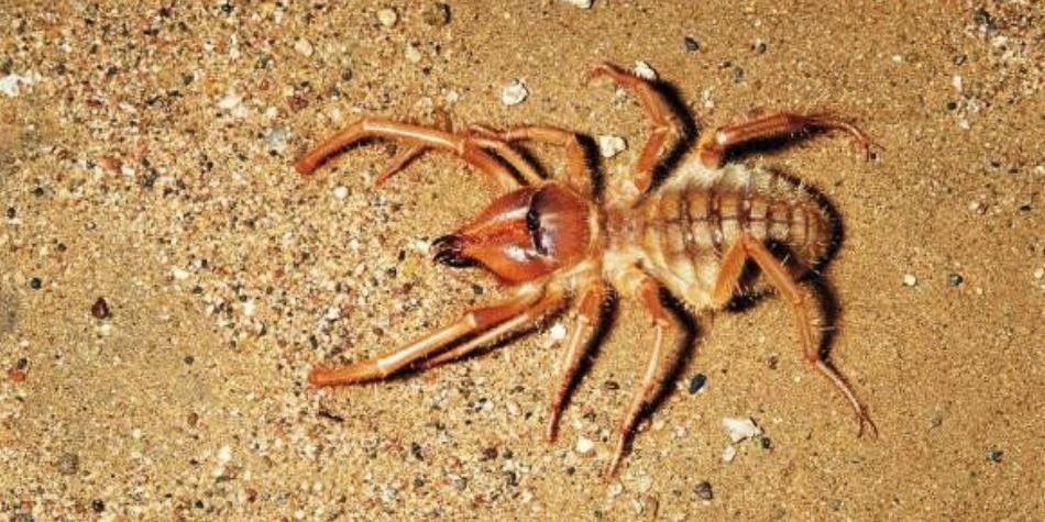 Si bien no guardan relación directa con las arañas, los solífugos se diferencian de ellas por sus enormes quelíceros en forma de pinza y su cuerpo segmentado. Aunque parecen tener 10 patas, en realidad tiene ocho ya que las otras dos restantes son unos órganos sensoriales llamados pedipalpos.