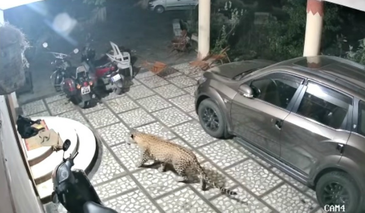 Una cámara de seguridad registró el aterrador instante en que un leopardo se acerca sigilosamente a un perro que descansaba en la entrada de su casa ubicada en Amreli, al oeste de la India. Míralo en YouTube.