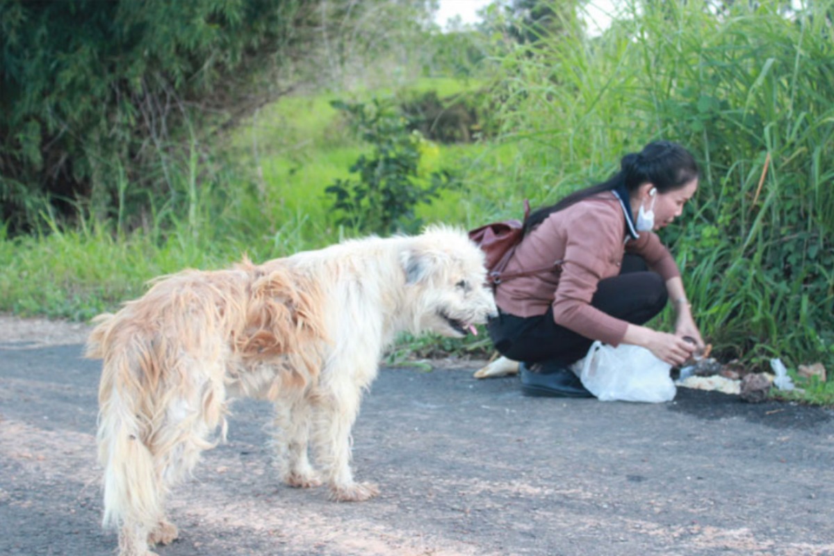 Cuando se acercó al perro, pudo notar que este no se encontraba en mal estado. Pues todo lo contrario, lucía muy bien alimentado e hidratado. Por ello, debido a la extraña situación, se dio cuenta que el perro era cuidado por una mujer llamada Soawalak.